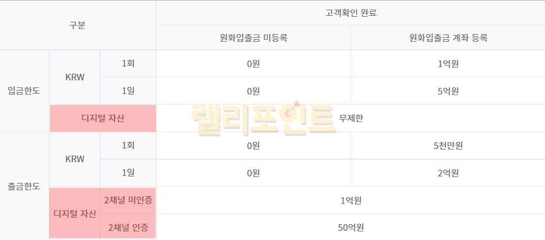 코인 지갑 출금한도: 2채널 미인증시 1억원, 2채널 인증시 50억원