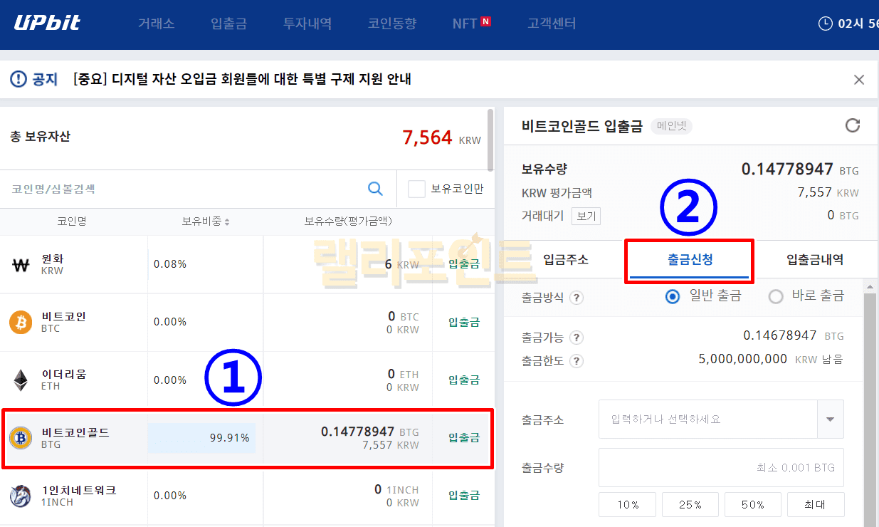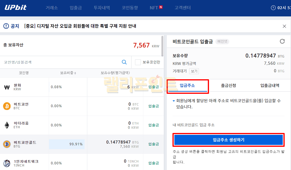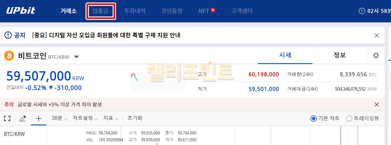 1. 업비트 사이트 입출금 메뉴를 들어갑니다.