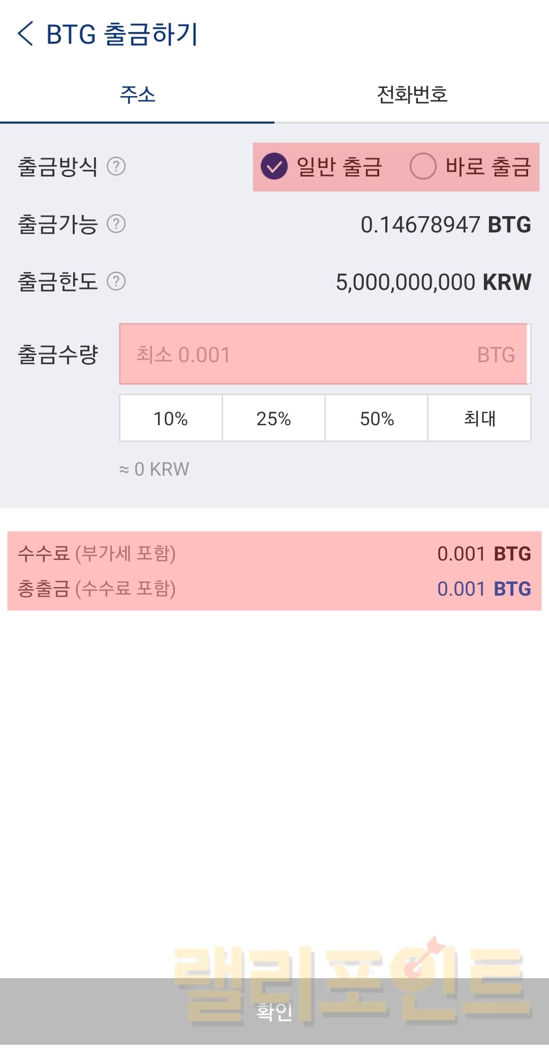 6. 코인 출금수량을 설정합니다.