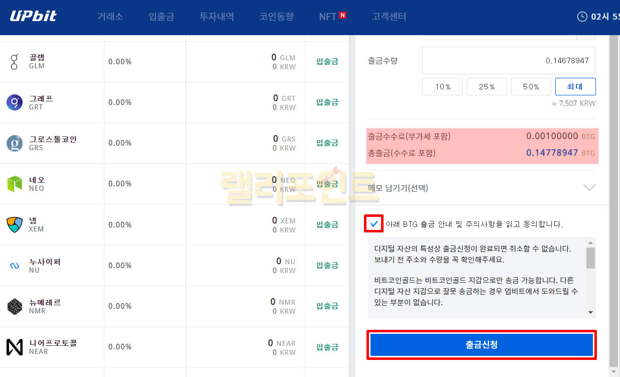 7. 출금수수료를 확인합니다.