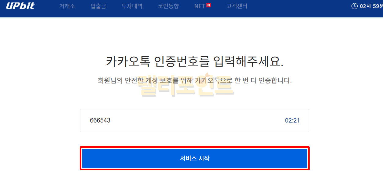 4. 카카오톡 인증번호를 입력합니다.