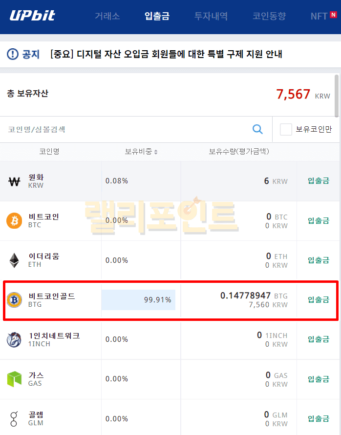 - 코인별 지갑 주소가 다름으로 지갑 주소에 맞는 코인을 입출금하셔야 합니다. (비트코인골드 지갑은 비트코인골드만)