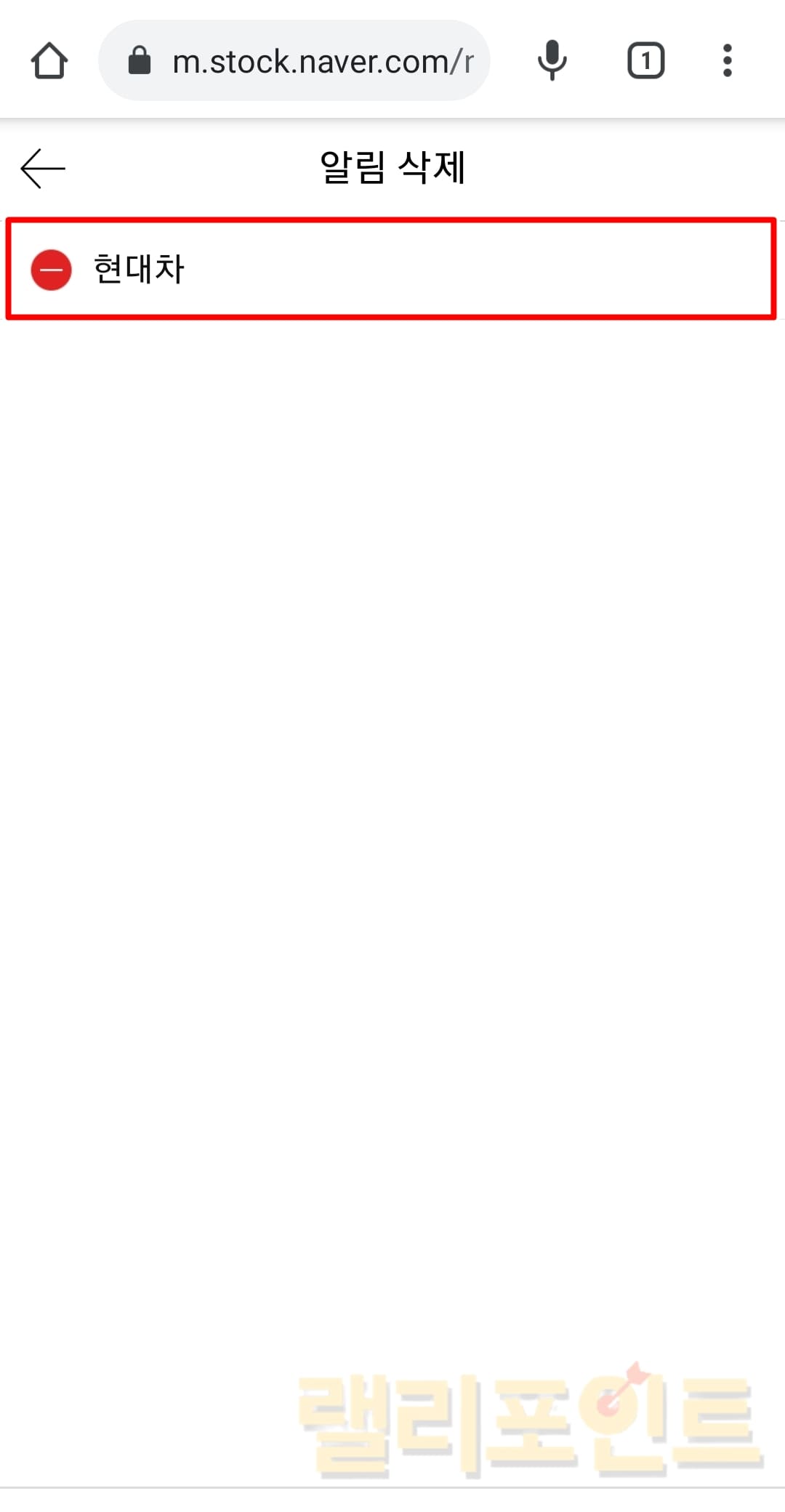 4. 종목을 삭제하시겠습니까?에 예를 누르면 주식 알림이 지워집니다.