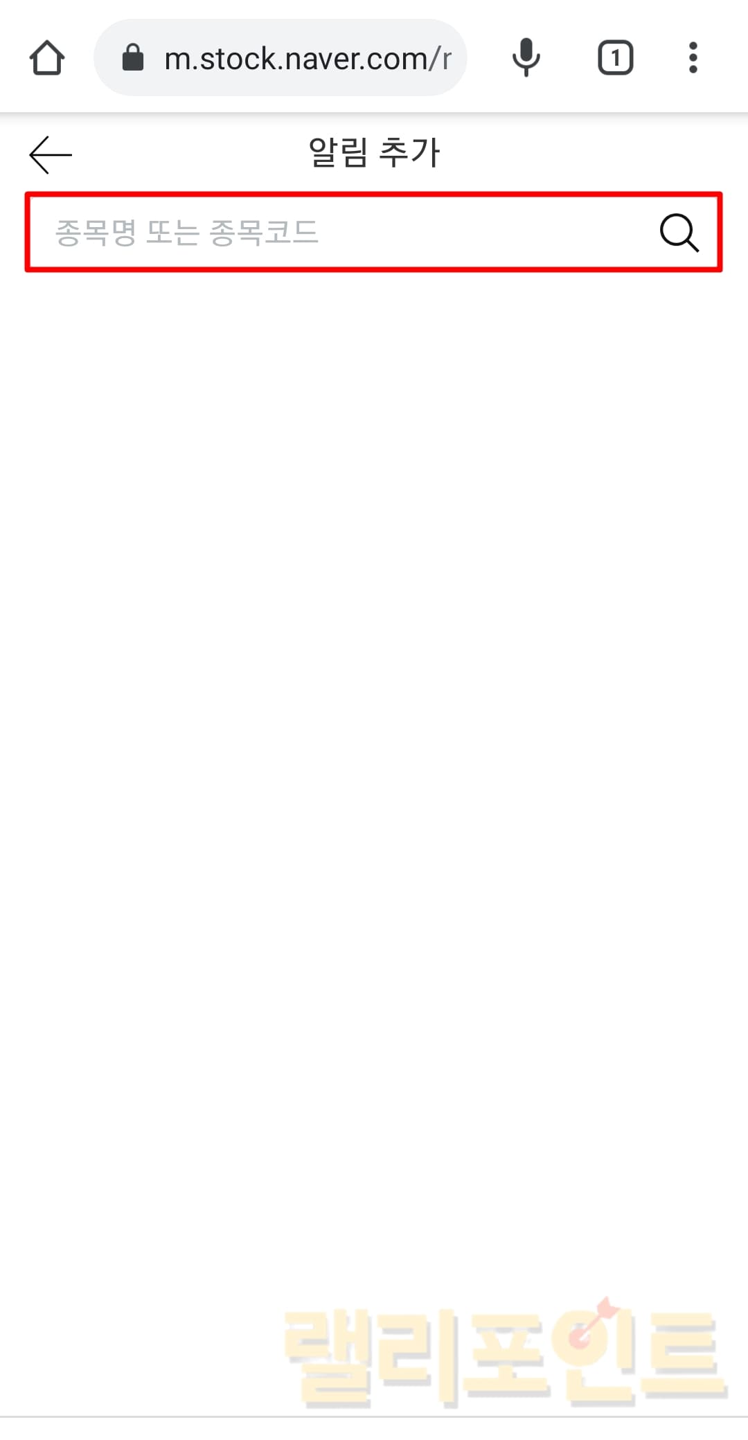 4. 종목명 또는 종목코드에 알림을 설정하고 싶은 주식을 입력합니다.