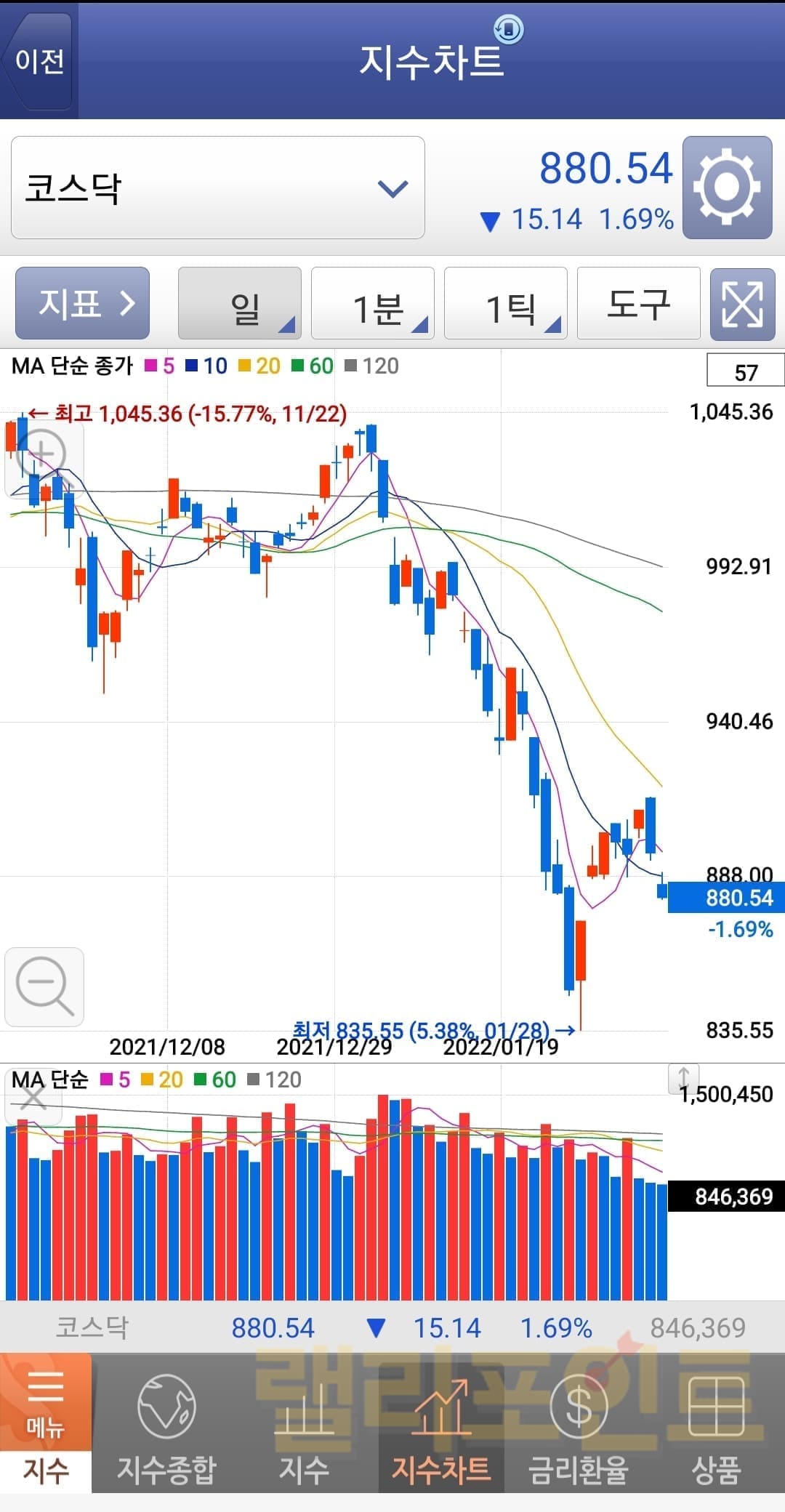 6. 영웅문 앱에서 코스닥 지수차트 확인이 가능합니다.