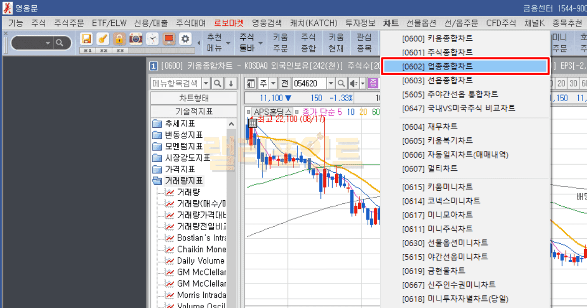 3. [0602] 업종종합차트를 누릅니다.
