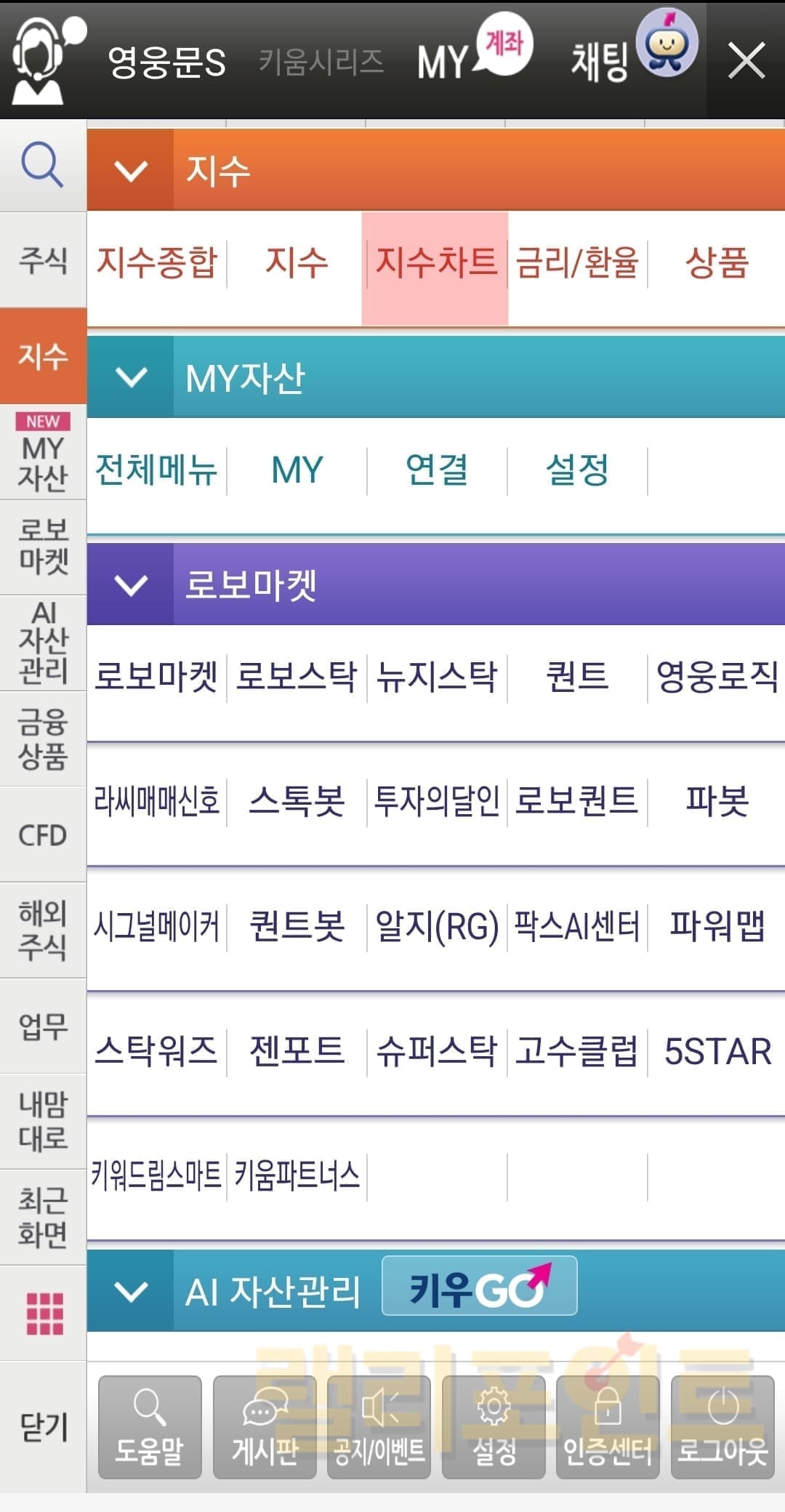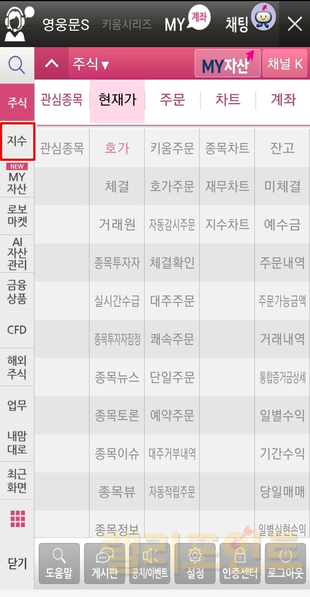 이 글을 찾아오신 많은 분들이 키움증권 영웅문 HTS/MTS로 주식을 투자하고 계실텐데 검색창에서 회사명이나 회사코드를 입력하면 해당 종목의 주가차트를 보는 것은 매우 쉽다는 것을 알고 계실 것입니다. 그런데 종목 검색창에서 코스피 또는 코스닥을 검색하면 검색되지 않기에 종합지수 차트를 보는 방법을 모르시는 투자자분들이 꽤 많은 것 같습니다. 그래서 제 주변의 한 투자자분은 코스피, 코스닥 지수차트를 볼 때에는 네이버금융에서 보거나 인베스팅과 같은 타사 서비스에서 보시는 분도 계시더군요. 그래서 오늘은 HTS/MTS별 키움증권 영웅문에서 지수차트 보는 방법을 소개드리려고 합니다.