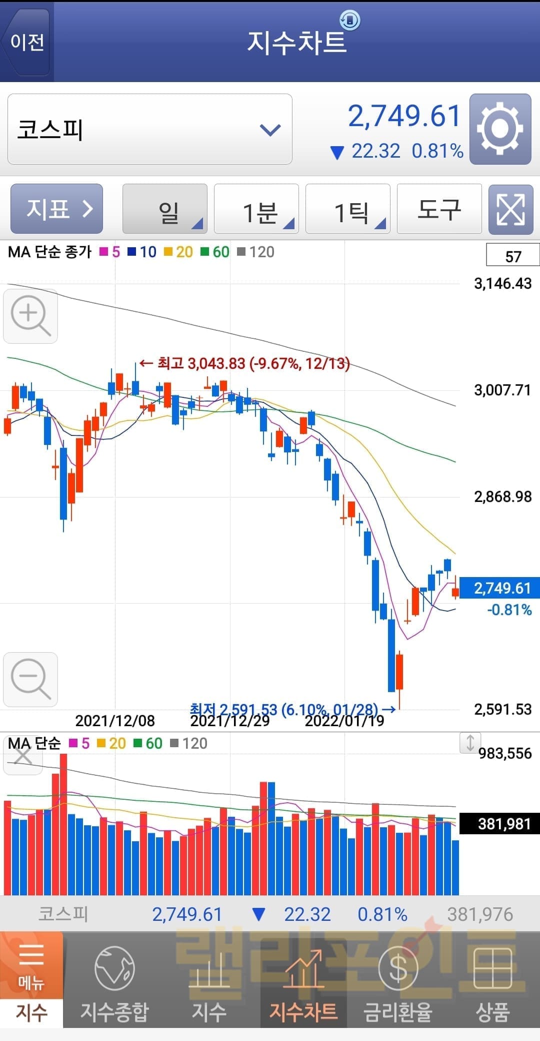 4. 종합(KOSPI) 지수차트를 확인할 수 있습니다.