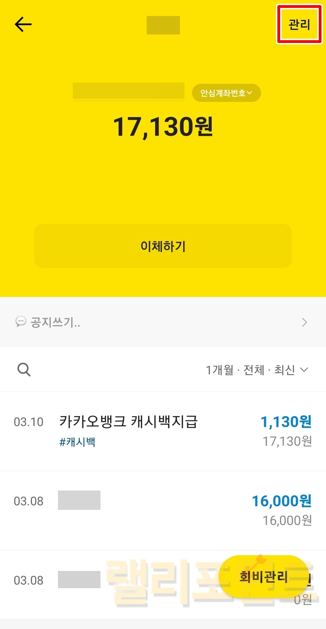 3. 관리 버튼을 누릅니다.