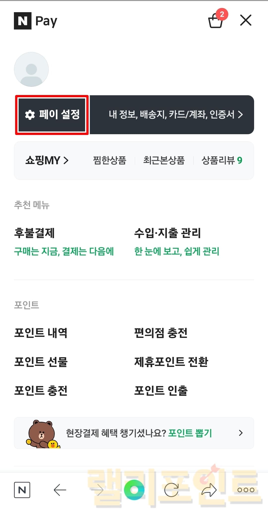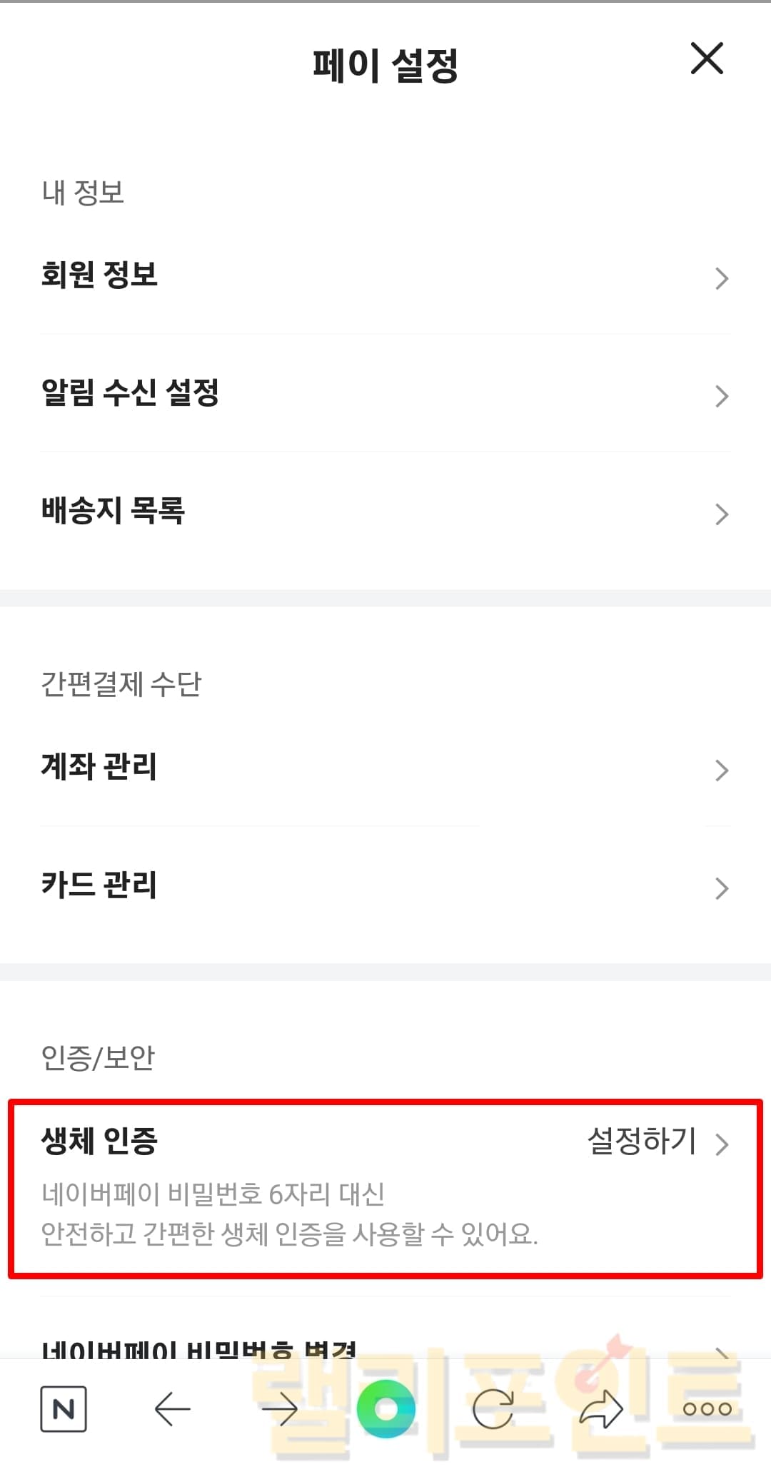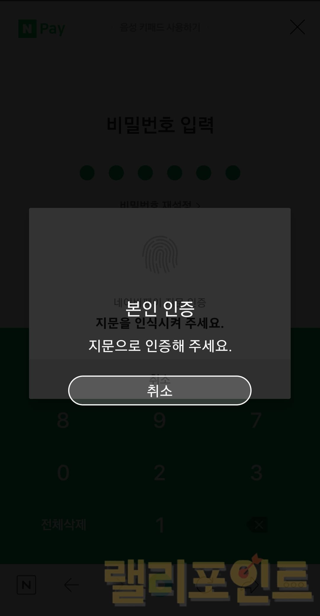 9. 네이버페이에 지문 인증이 등록되었습니다.