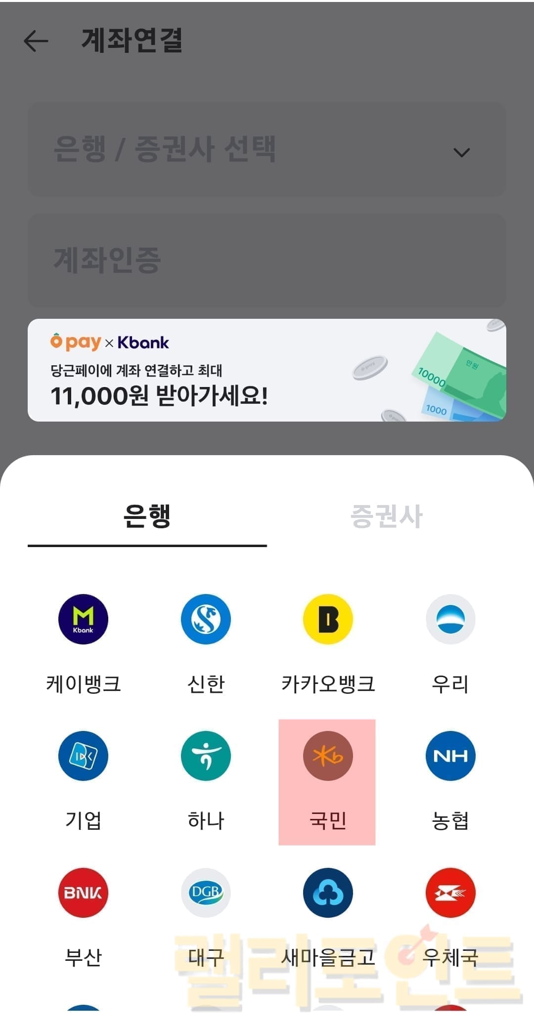 10. 연결할 은행사를 선택합니다.