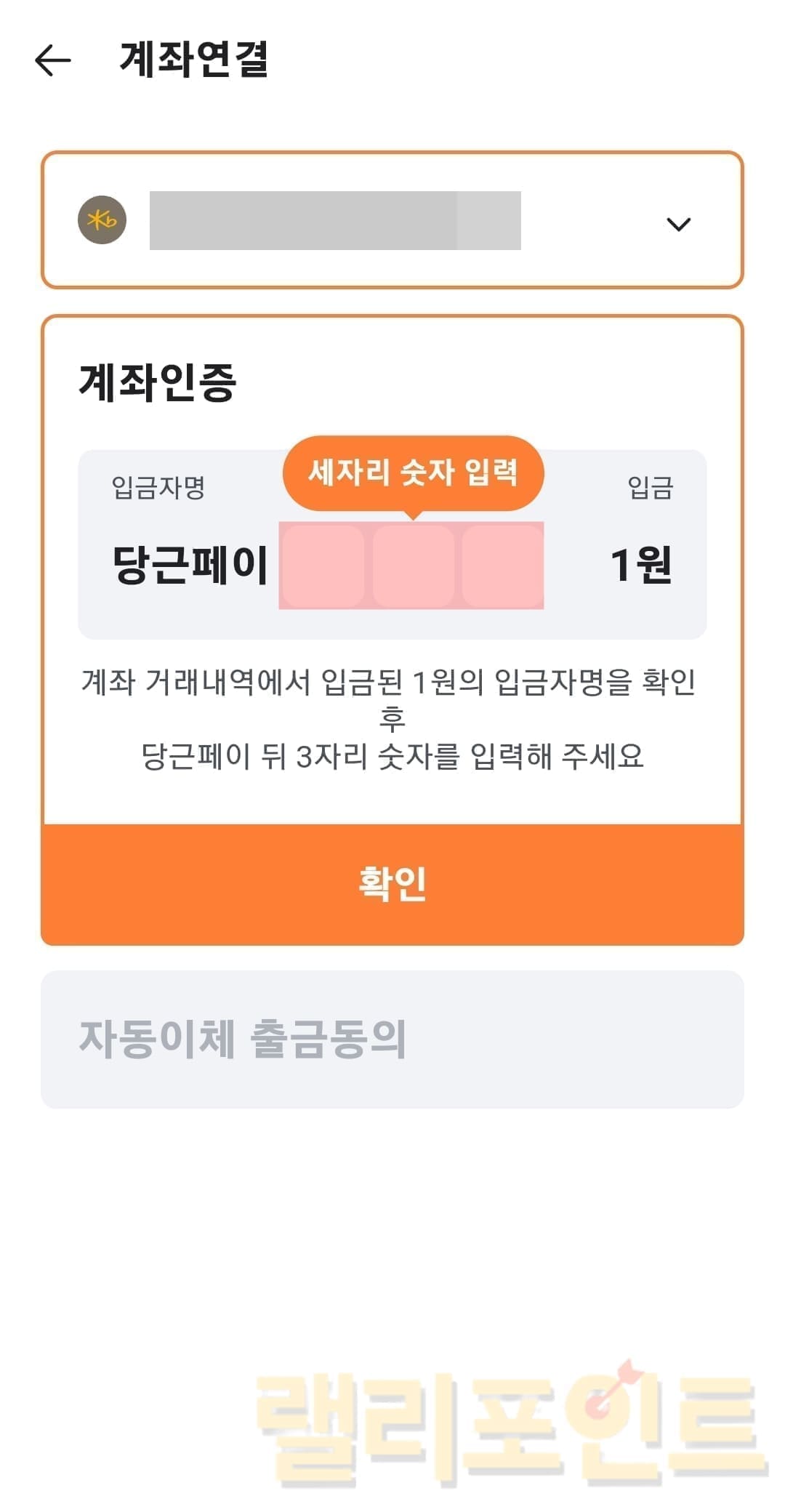 14. 입금자명 세자리 숫자를 입력합니다.