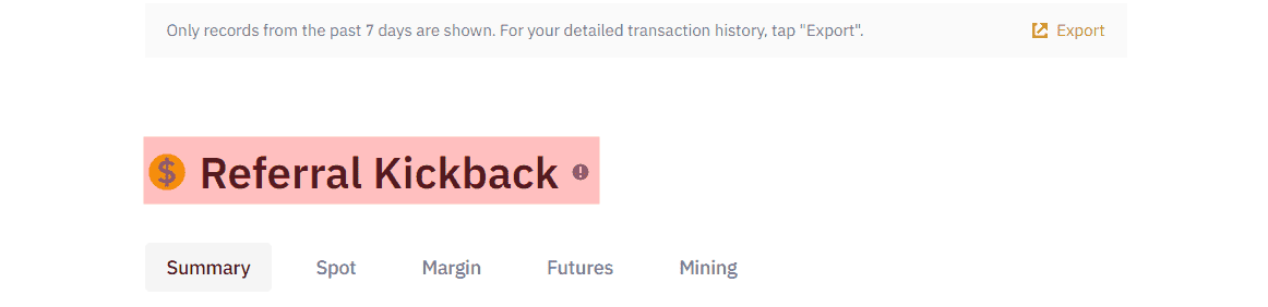 Referral Kickback에서는 최근 7일간의 거래내역에 따른 레퍼럴 수수료 혜택을 표시합니다. 그렇기 때문에 최근거래가 7일이 넘었다면 아래 방법을 통해서 기간변경 후 레퍼럴 적용을 확인해야 합니다.