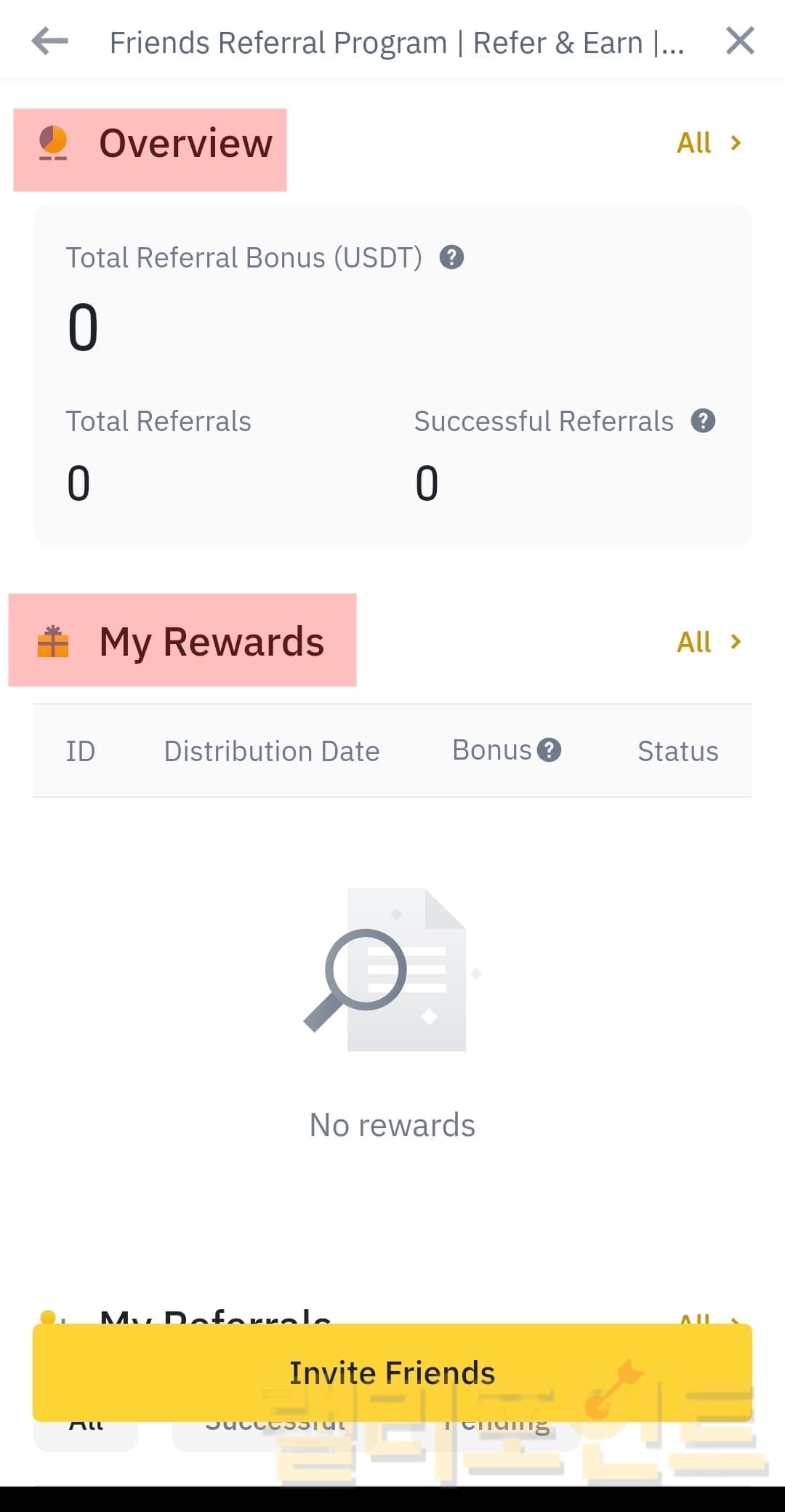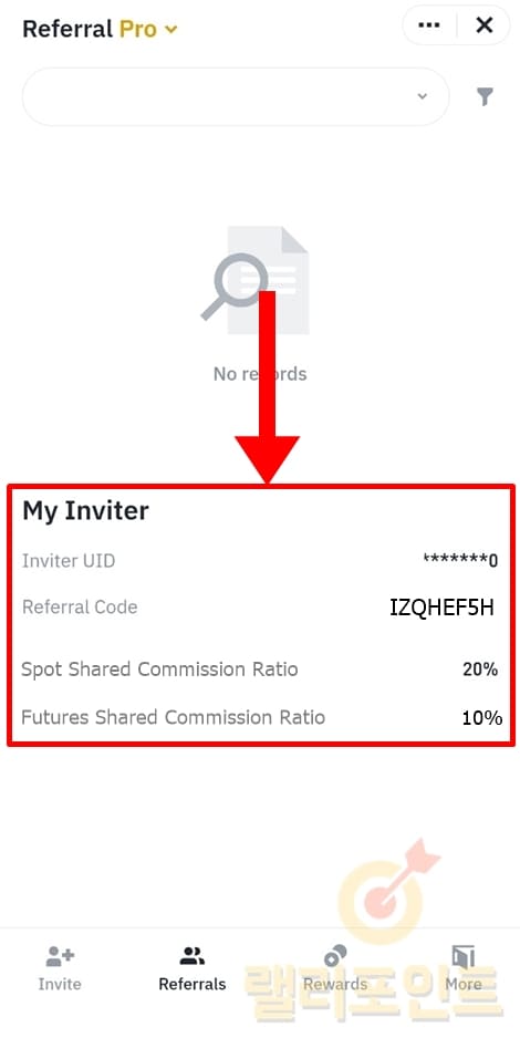 7. 화면을 아래로 내려서 바이낸스 레퍼럴 확인이 가능합니다.