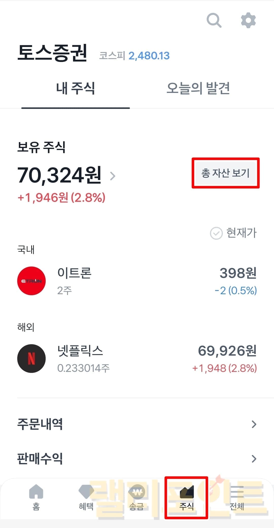 3. 내주식에서 총 자산 보기를 누릅니다.