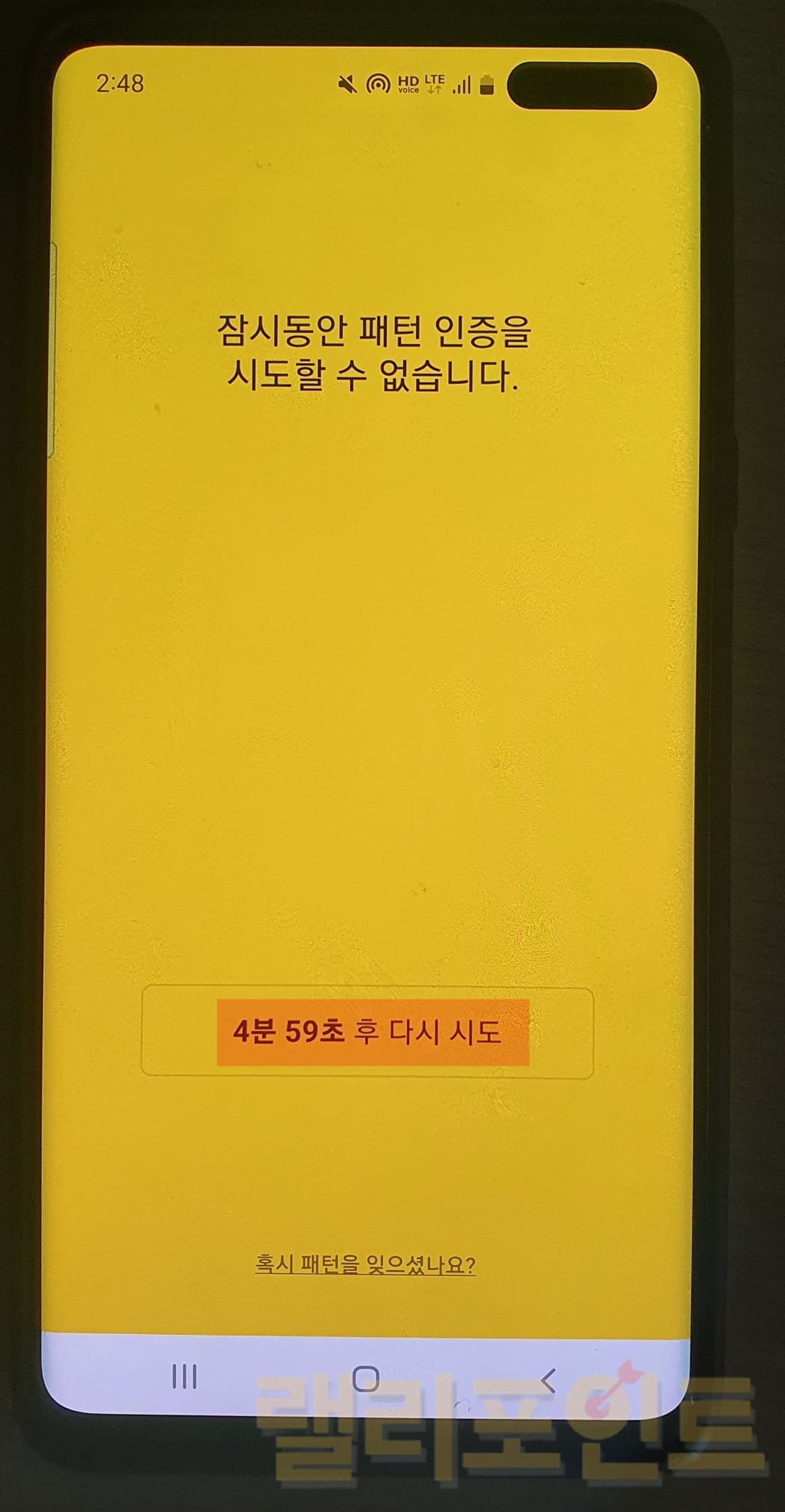 - 5분 후 다시 시도하라는 안내화면을 확인합니다.