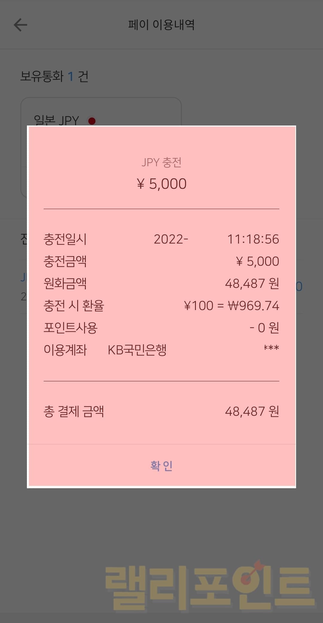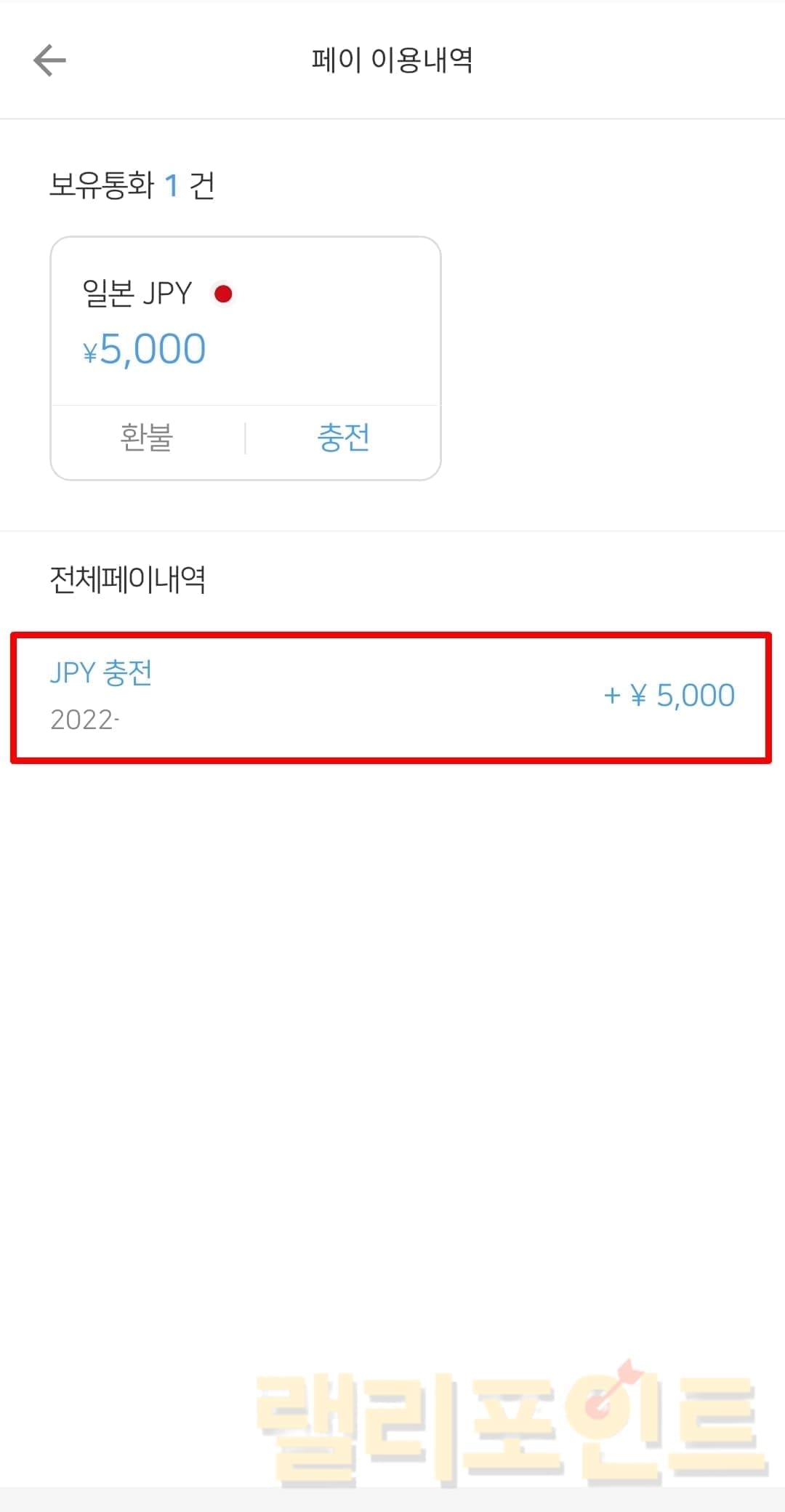 3. 트래블월렛에서 충전 상세내역을 확인할 수 있습니다.