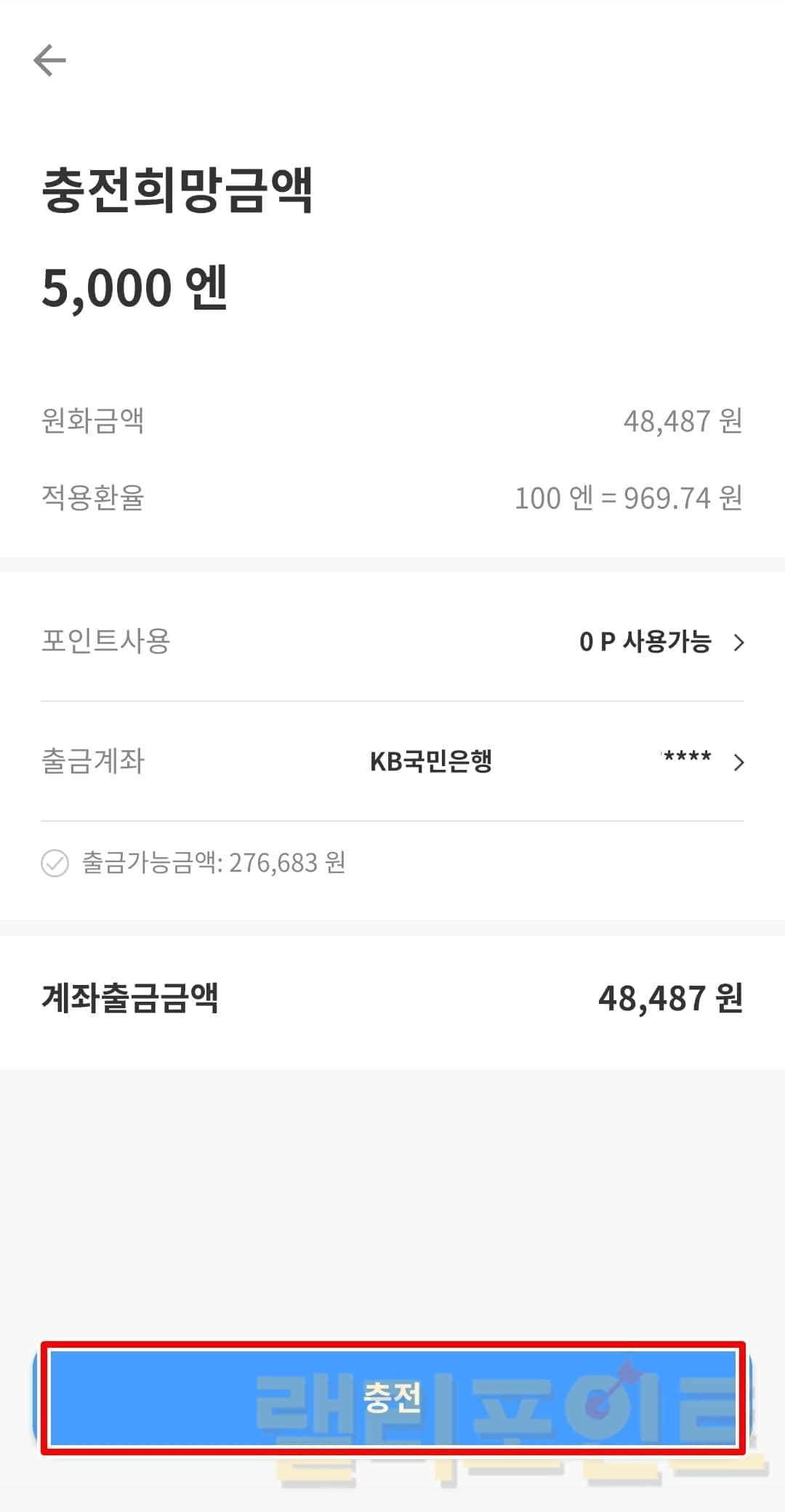 8. 충전 버튼을 클릭합니다.