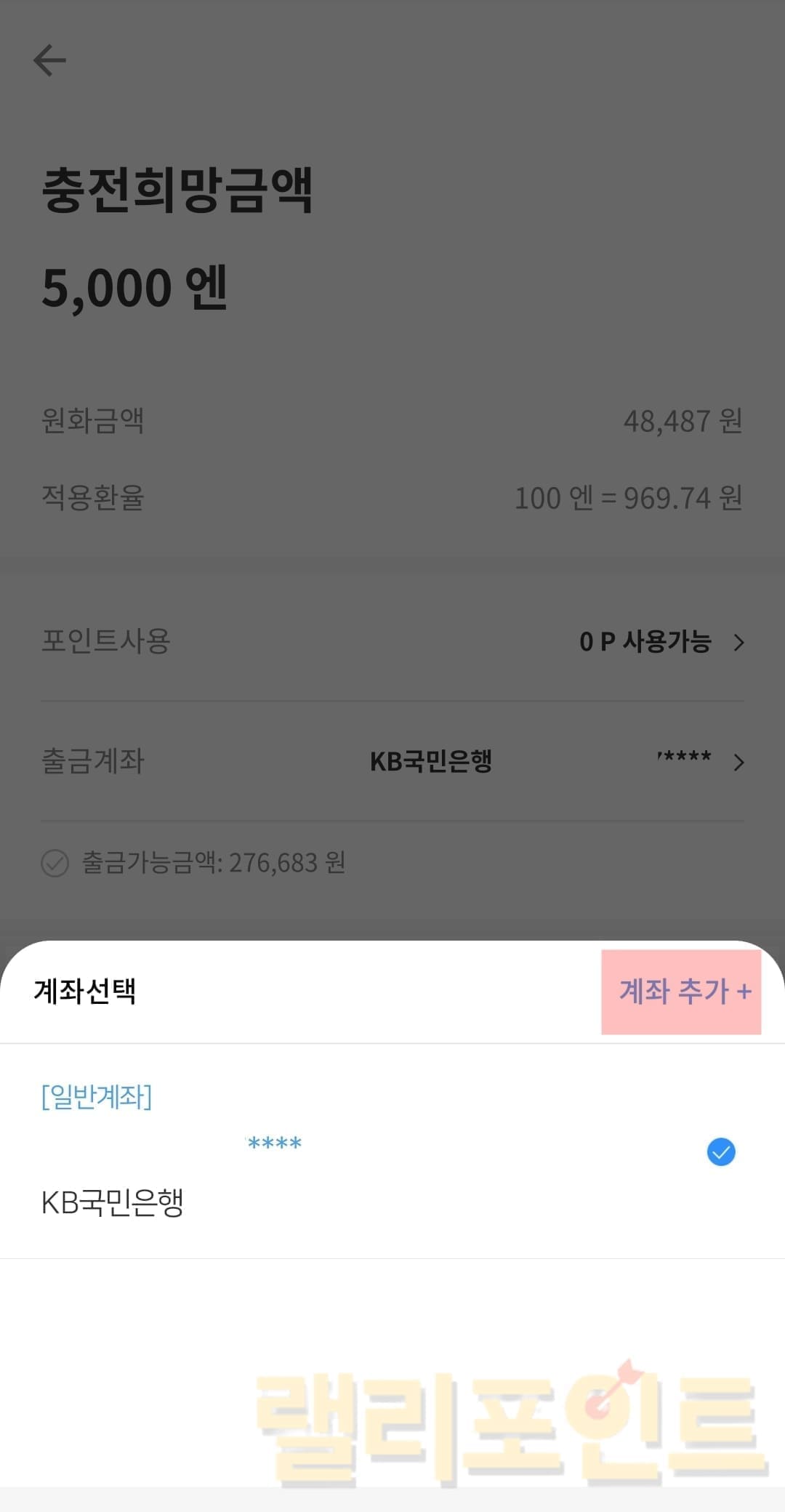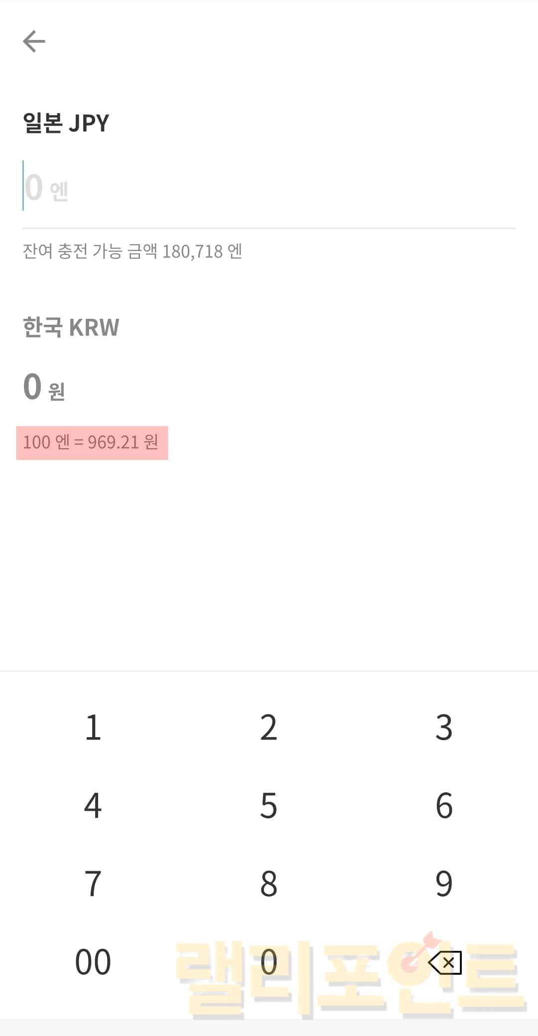 5. 아래 한국KRW에서 환전금과 적용 환율을 확인합니다.