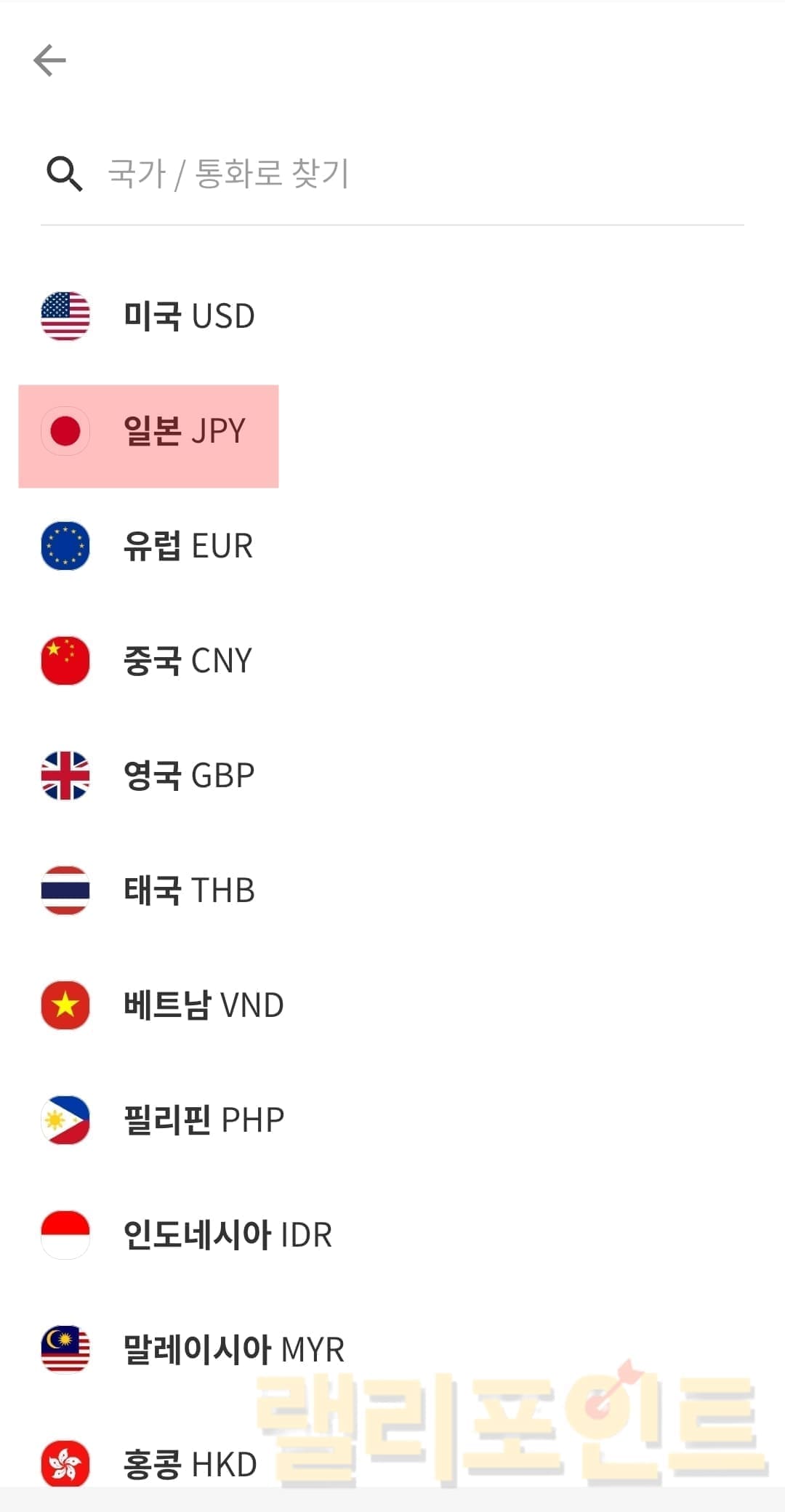 3. 환전하고 싶은 국가의 통화를 선택합니다.