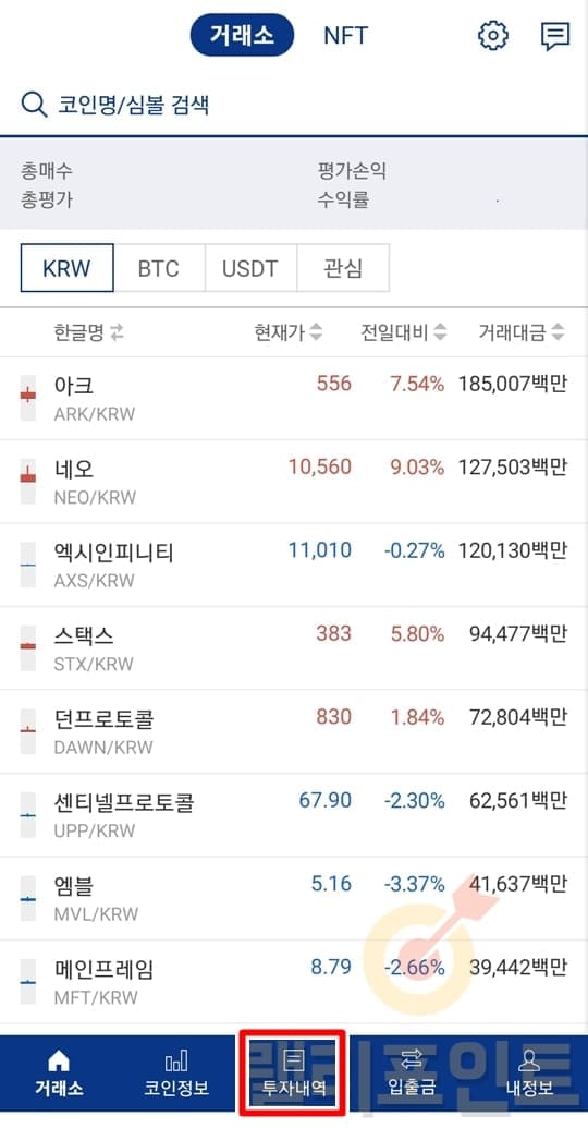 2. 투자내역을 클릭합니다.