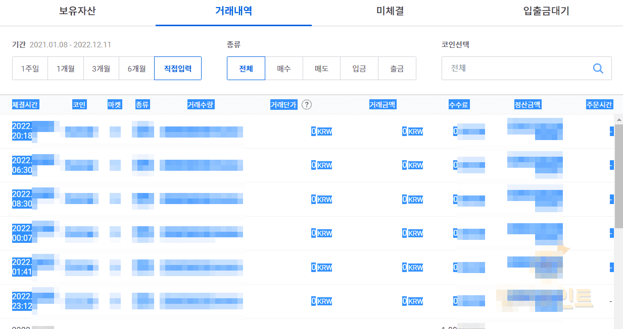 7. 나의 업비트 거래내역을 확인할 수 있습니다.