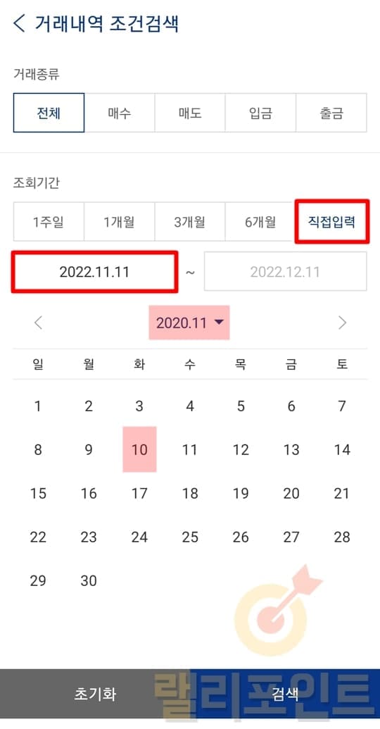 5. 거래내역을 시작일을 설정합니다.