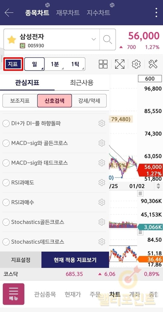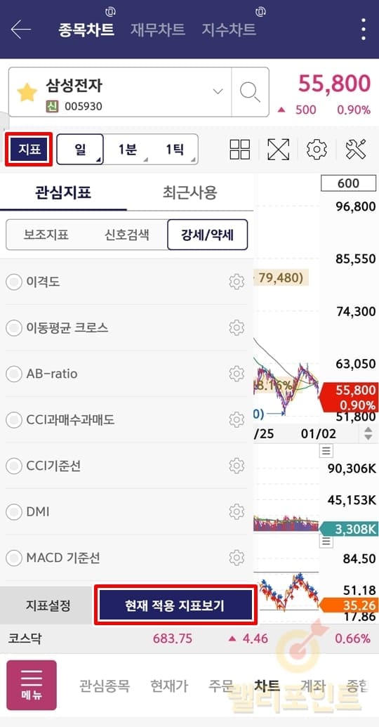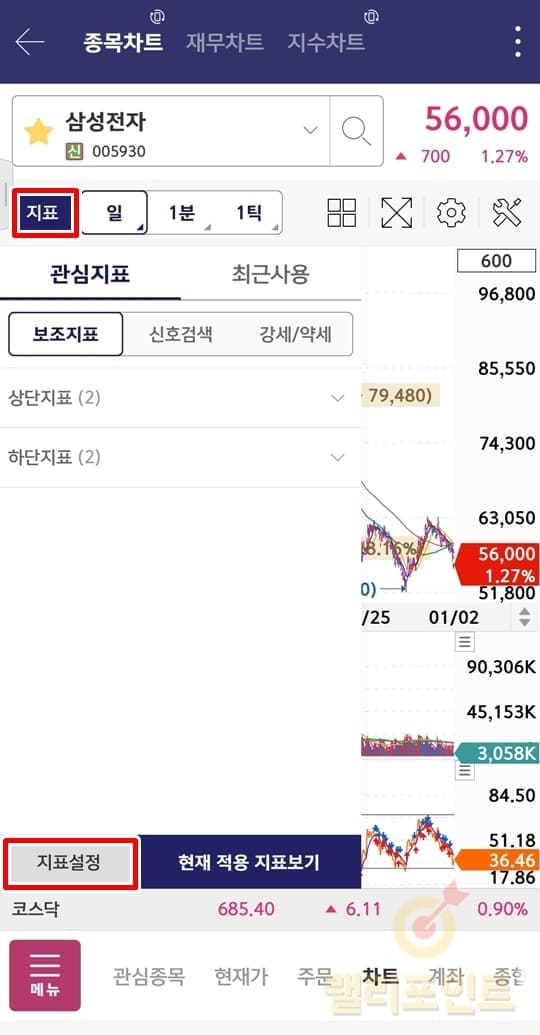 3. 상단지표나 하단지표를 선택합니다.