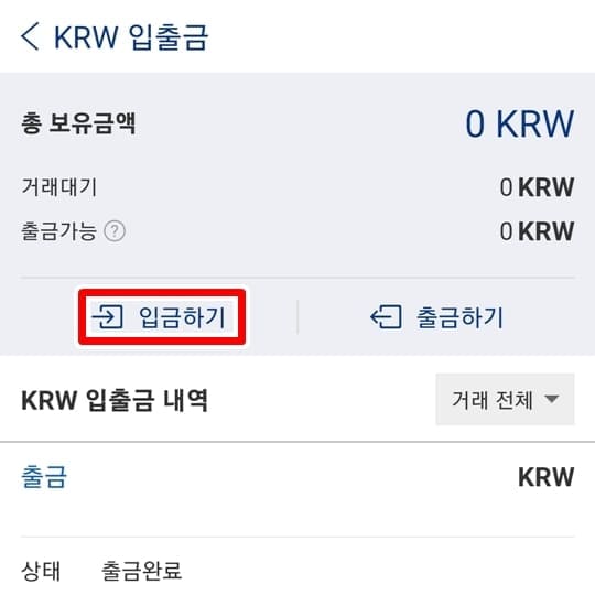 11. 업비트 앱에서 입출금 > 원화를 클릭합니다.