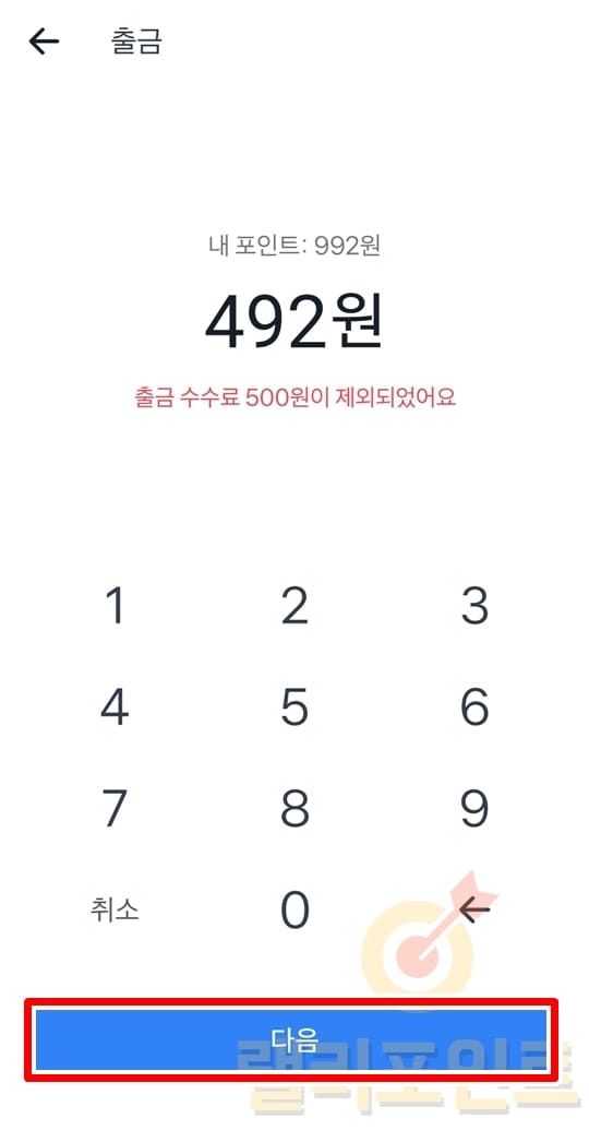6. 현금전환되어 출금될 포인트를 확인하고 다음을 누릅니다.