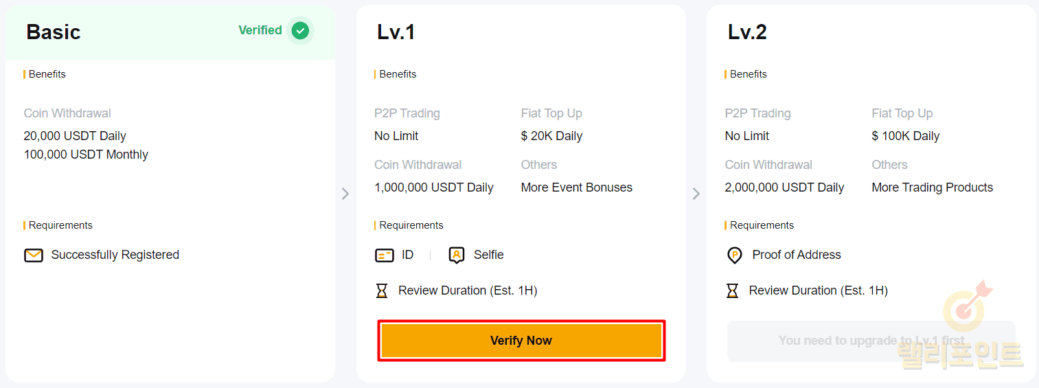 4. Lv.1 아래의 Verify Now를 클릭합니다.