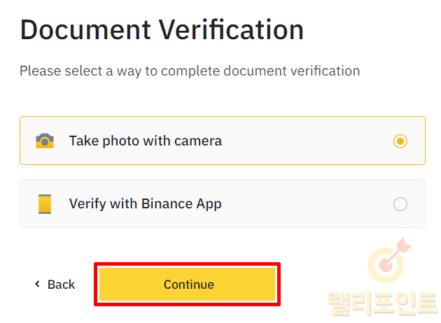 이 단계 이후부터는 바이낸스 KCY 인증을 진행해야 하는데 신분증과 얼굴 인증을 위해서 카메라가 필수입니다. 그래서 다시 한번 PC에 노트북처럼 웹캠이 달려있지 않다면 위의 모바일에서 바이낸스 가입 방법을 이용하시길 추천드립니다. 이미 아이디(이메일/전화번호)와 비밀번호를 설정하셨으니 앱 설치 후 아이디, 비밀번호 입력 후 KCY 인증 절차부터 진행하시면 됩니다.