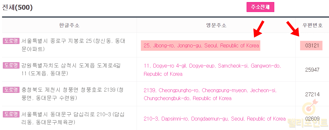 14. 영문주소지 사이트에서 거주 주소를 검색합니다.