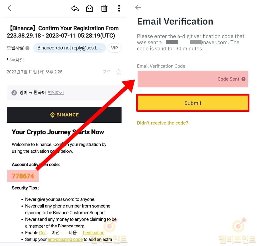 5. 휴대폰 문자 인증번호 또는 이메일에 수신된 인증번호를 입력합니다.