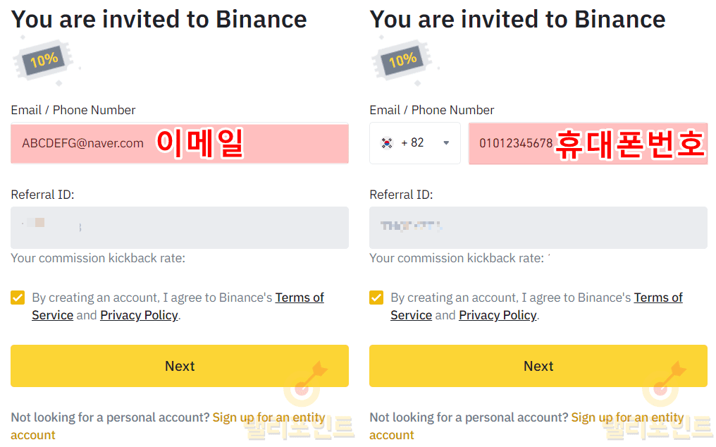 9. 바이낸스 공식 제휴 레퍼럴 코드인 IZQHEF5H를 입력합니다.