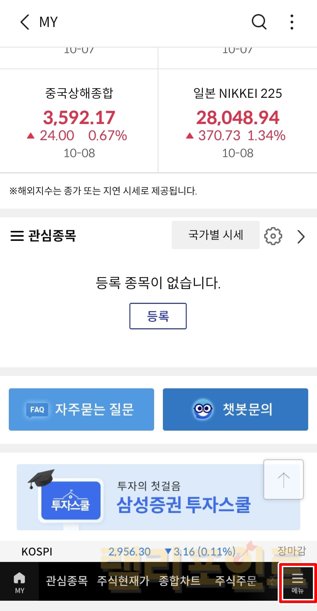 1. 삼성증권 mPOP 앱을 실행하고 MY 메뉴를 클릭합니다.