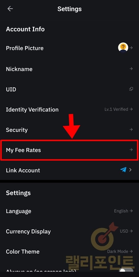 4. My Fee Rates를 클릭합니다.