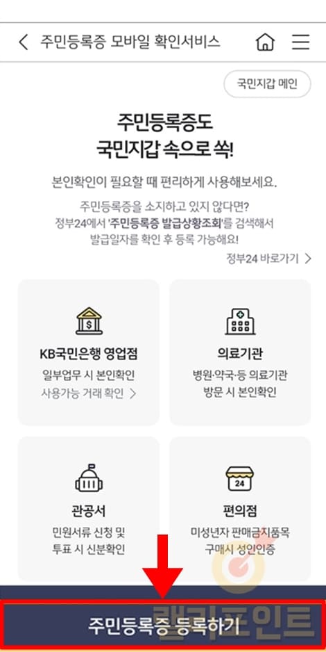 3. 주민등록증 등록하기 버튼을 클릭합니다.