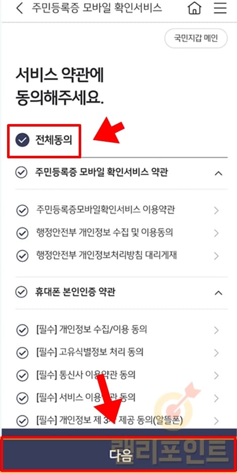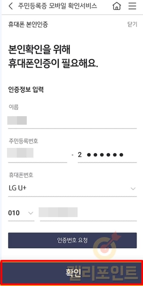 7. 문자 인증을 완료하고 확인을 누릅니다.