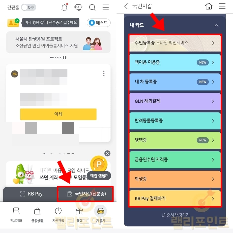 안녕하세요. 랠리포인트 블로거입니다. 이번 글에서는 국민은행 모바일 신분증 등록 방법을 소개드리도록 하겠습니다. 최근 디지털 시대가 도래하면서 본인의 신분을 인증하는 과정 또한 스마트폰에서 가능해지게 되었는데요. 그래서 정부에서는 국민지갑 서비스를 통하여 실물 형태의 신분증과 동일한 효력을 가진 모바일 신분증 서비스를 허용하게 되며 이제는 우리가 자주 사용하는 은행 중 하나인 국민은행에서도 모바일 신분증을 등록하여 사용할 수 있게 되었습니다. 따라서 관계 법령인 주민등록법 제25조에 따라 실물 주민등록증과 동일하게 스마트폰으로 손쉽게 본인확인을 하고 싶으시다면 이번 글에서 안내드리는 국민은행 모바일 신분증 등록 방법을 따라 설정해보시길 바랍니다.