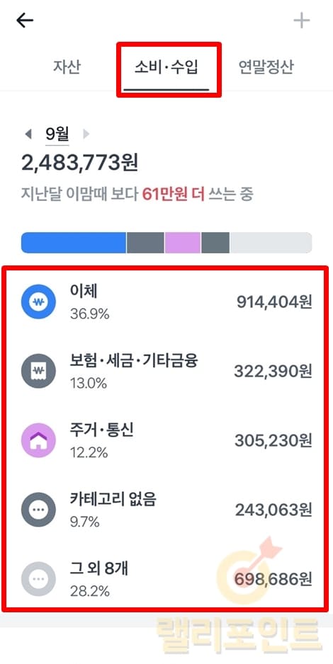 여기까지 랠리포인트에서는 토스 가계부 사용 방법을 총정리드렸습니다. 이렇듯 단 한번의 연결해두면 나의 지출과 소득을 자동으로 확인할 수 있을 뿐만 아니라 필요없는 지출 등을 쉽게 파악할 수 있어서 재정을 쉽게 관리할 수 있습니다. 많은 도움이 되셨길 바라며 글을 마칩니다.