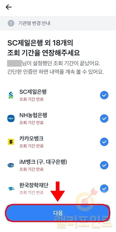 5. 내가 보유한 모든 은행과 카드사를 선택합니다.