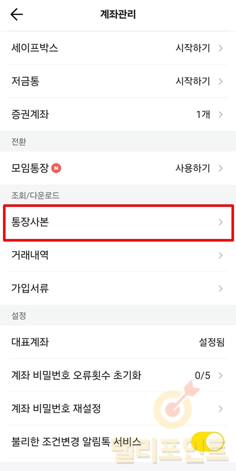 4. 통장사본을 누릅니다.