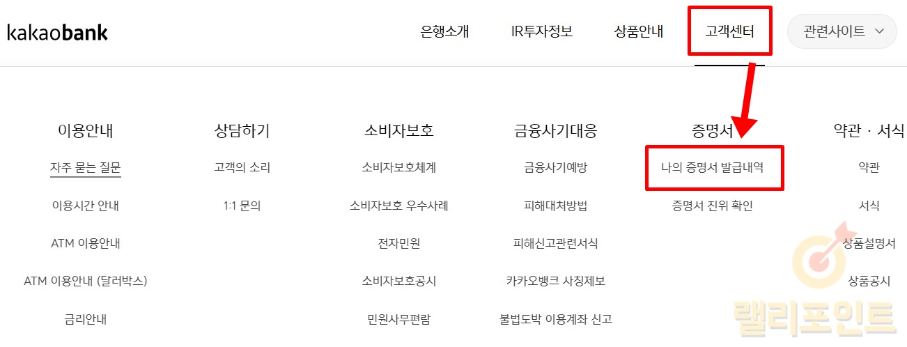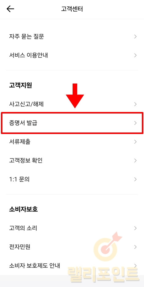 14. 상단에서 고객센터 > 나의 증명서 발급내역을 누릅니다.