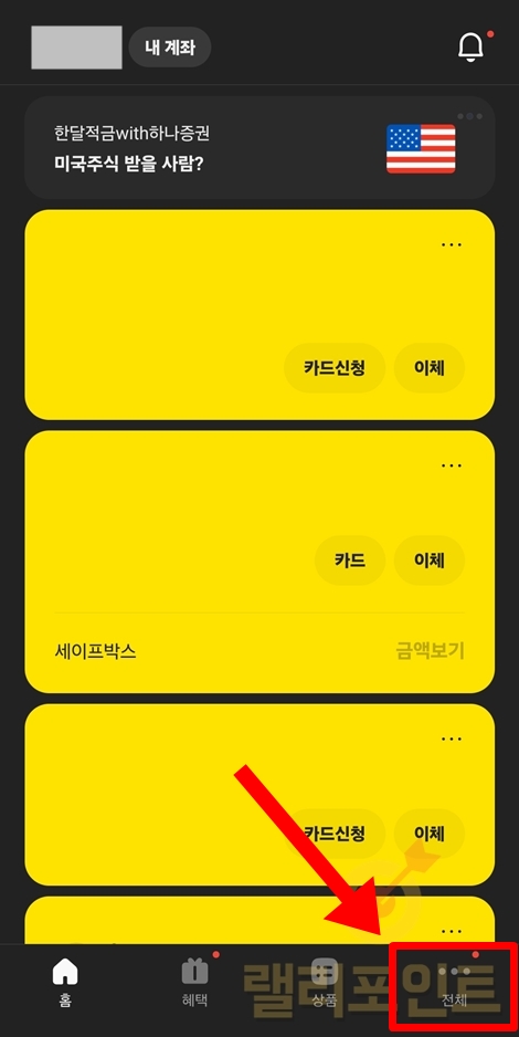 1. 카카오뱅크 앱에서 전체 메뉴를 클릭합니다.