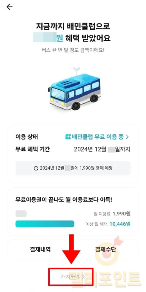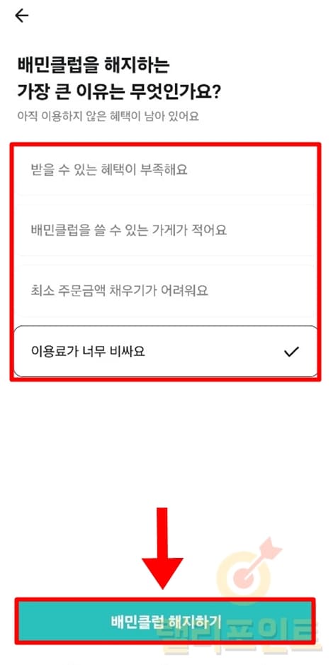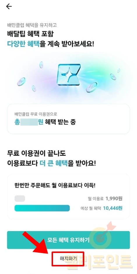 7. 배민클럽 해지하기를 누릅니다.