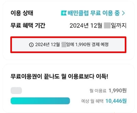 3. 배민클럽 이용정보를 클릭합니다.