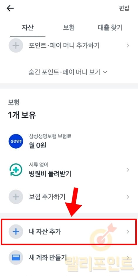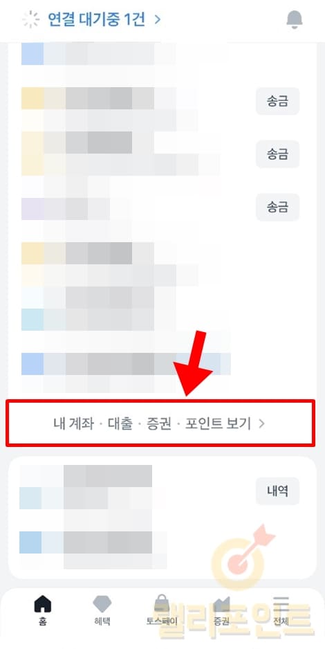 2. 홈 화면에서 내 계좌 대출 증권 포인트 보기를 누릅니다.