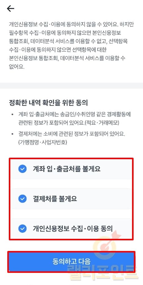 10. 모든 약관에 체크한 후 동의하고 다음을 누릅니다.