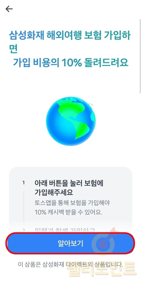 6. 해외여행자보험 페이지 접속 후 알아보기를 클릭합니다.